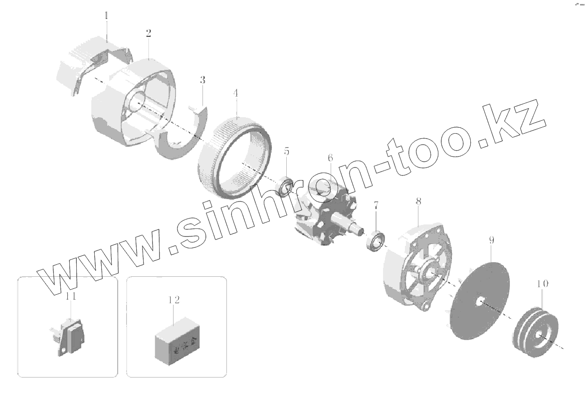 Каталог запасных частей к технике: Yutong Автобус ZK6121HQ. 3701-00005 Генератор