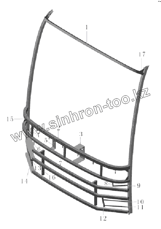 Каталог запасных частей к технике: Yutong Автобус ZK6121HQ. A229-5301 Каркас передка в сборе