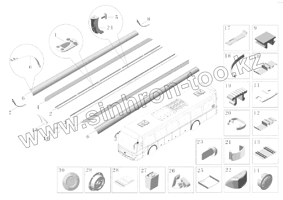 Каталог запасных частей к технике: Yutong Автобус ZK6121HQ. A229-5804 Комплект воздушного канала багажной полки ZK6121HQ