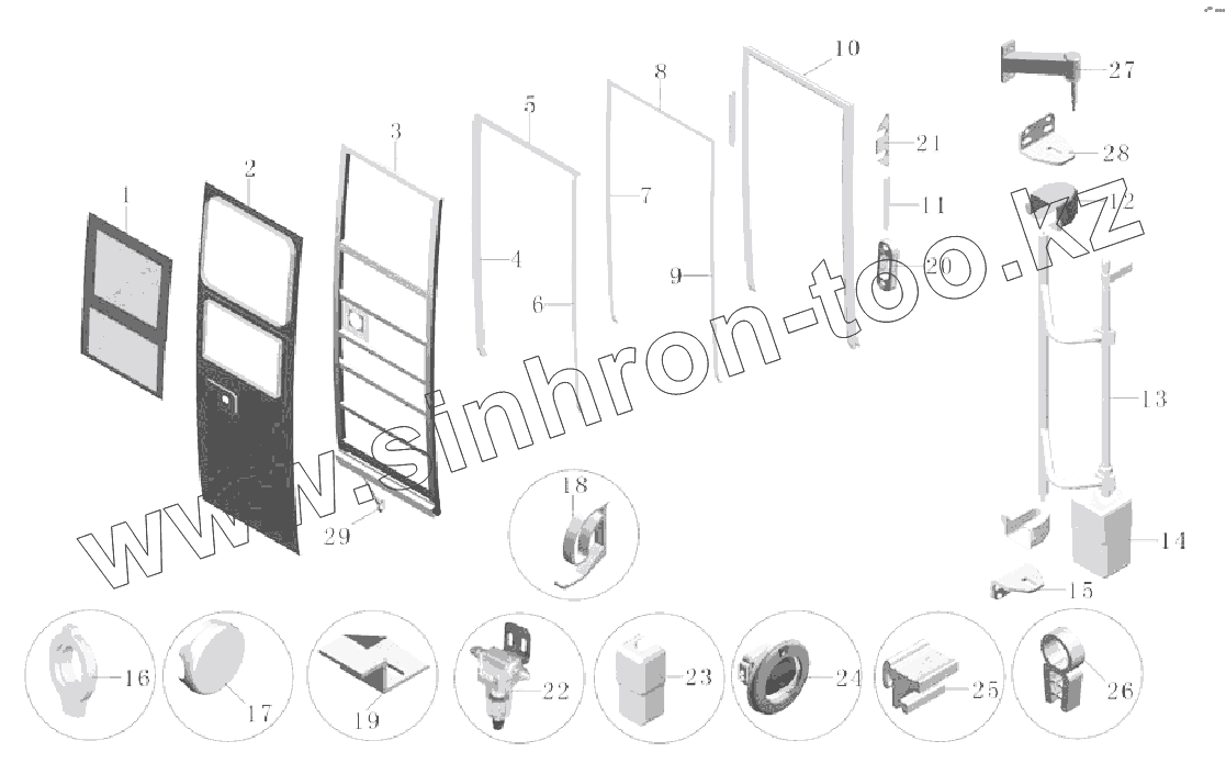 Каталог запасных частей к технике: Yutong Автобус ZK6121HQ. A229-6200-02 Монтажный комплект средней пассажирской двери