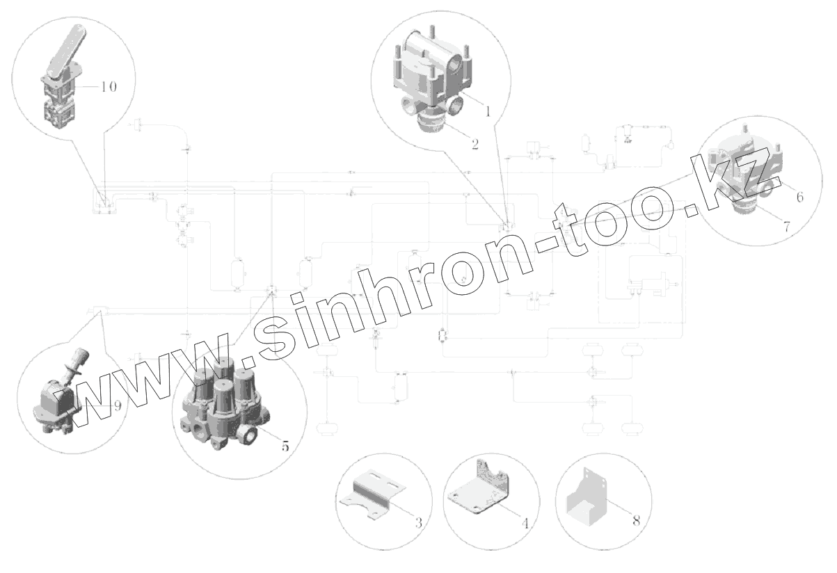 Каталог запасных частей к технике: Yutong Автобус ZK6121HQ. РА127-3570-01-М Клапаны в сборе