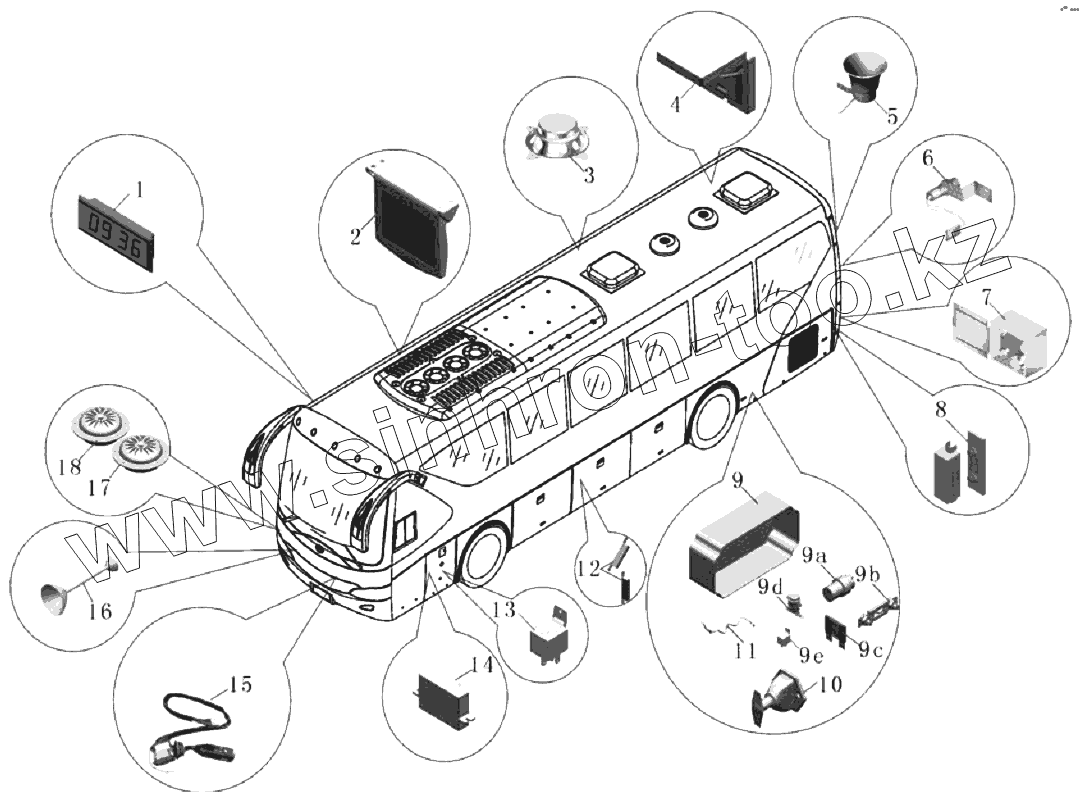 Каталог запасных частей к технике: Yutong Автобус ZK6129H-2. A098-3700 Электросистема (1)