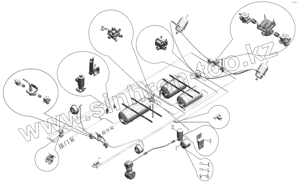 Каталог запасных частей к технике: Yutong Автобус ZK6737D. Установка воздухоосушителя в сборе