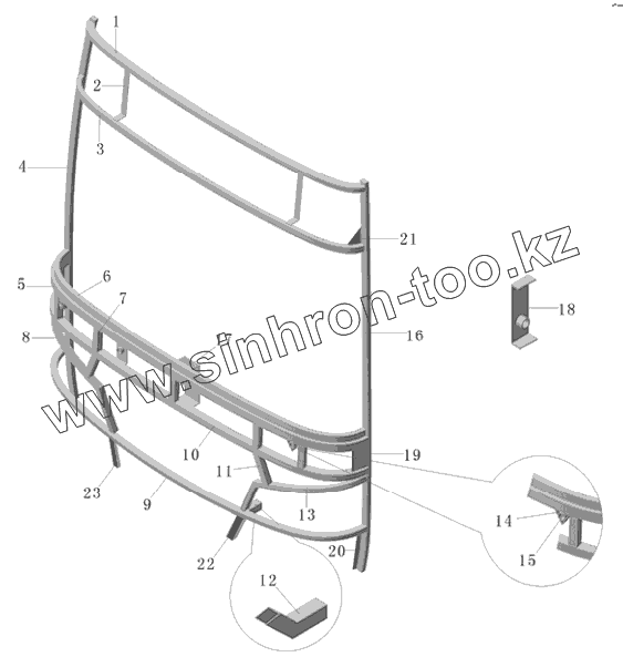 Каталог запасных частей к технике: Yutong Автобус ZK6852HG. Каркас передка в сборе H209-5301-01