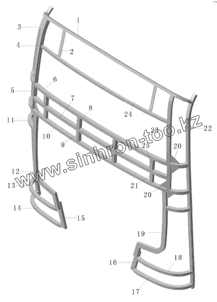 Каталог запасных частей к технике: Yutong Автобус ZK6852HG. Каркас задка в сборе H209-5601-01