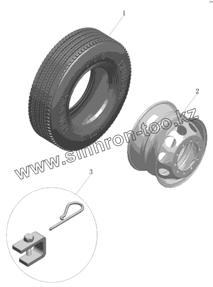 Каталог запасных частей к технике: Yutong Автобус ZK6852HG. Колеса и шины (трехугольник, 8.25R20)