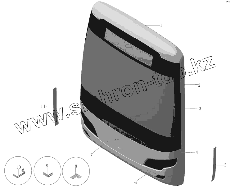 Каталог запасных частей к технике: Yutong Автобус ZK6852HG. Обшивка передка в сборе H187-5302