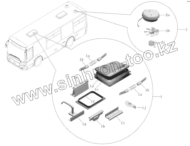 Каталог запасных частей к технике: Yutong Автобус ZK6852HG. Сборка потолочного люка (два) H202-5703-02