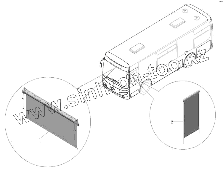 Каталог запасных частей к технике: Yutong Автобус ZK6852HG. Сборка занавески H187-8204