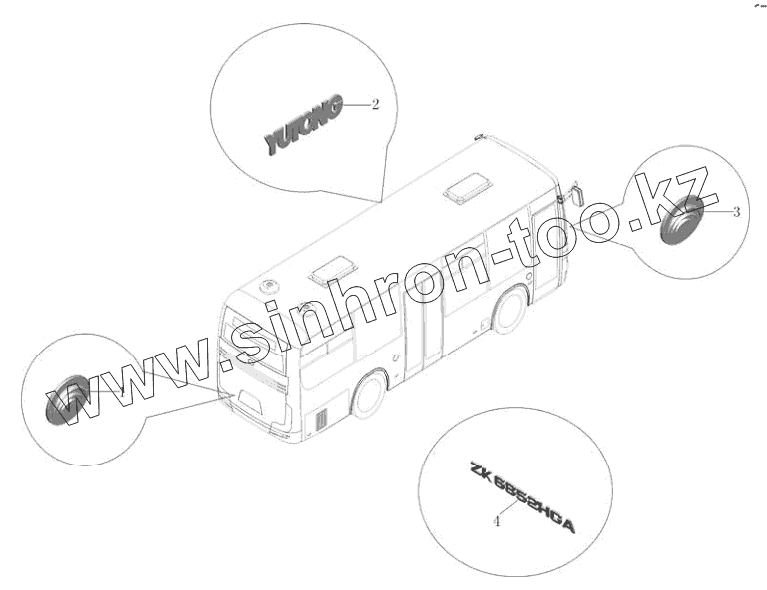 Каталог запасных частей к технике: Yutong Автобус ZK6852HG. Товарный знак автобуса ZK6852HG H209-8000-02