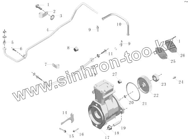 Каталог запасных частей к технике: Yutong Автобус ZK6852HG. Воздушный компрессор и трубопровод 1000-02489