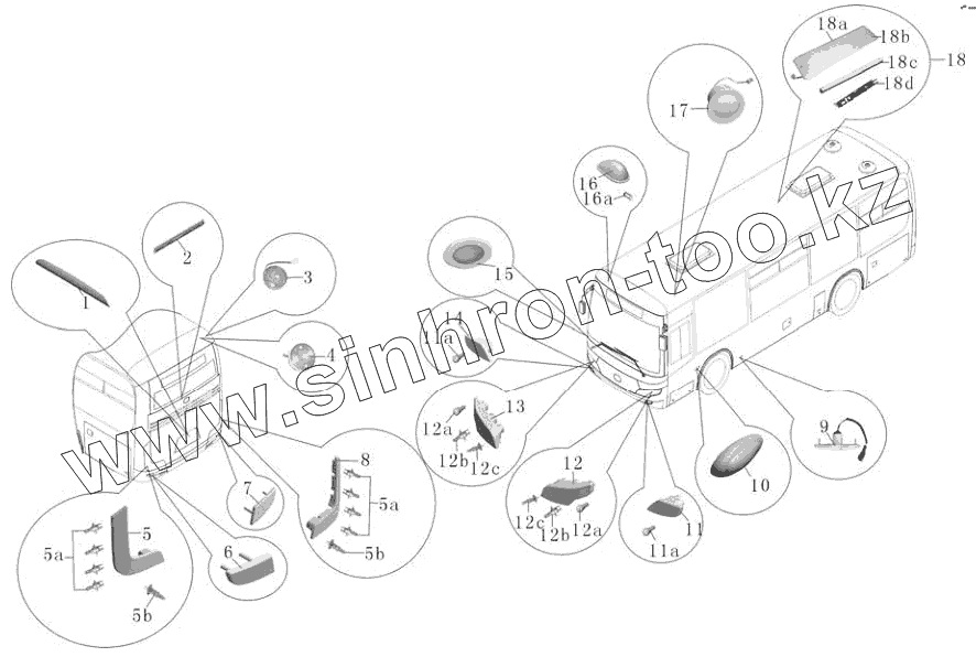 Каталог запасных частей к технике: Yutong Автобус ZK6852HG. ZK6852HG освещения целого автобуса H209-4100
