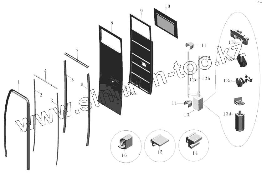 Каталог запасных частей к технике: Yutong Автобус ZK6899HA. Дверь пассажиров промежуточная (ZK6899H)