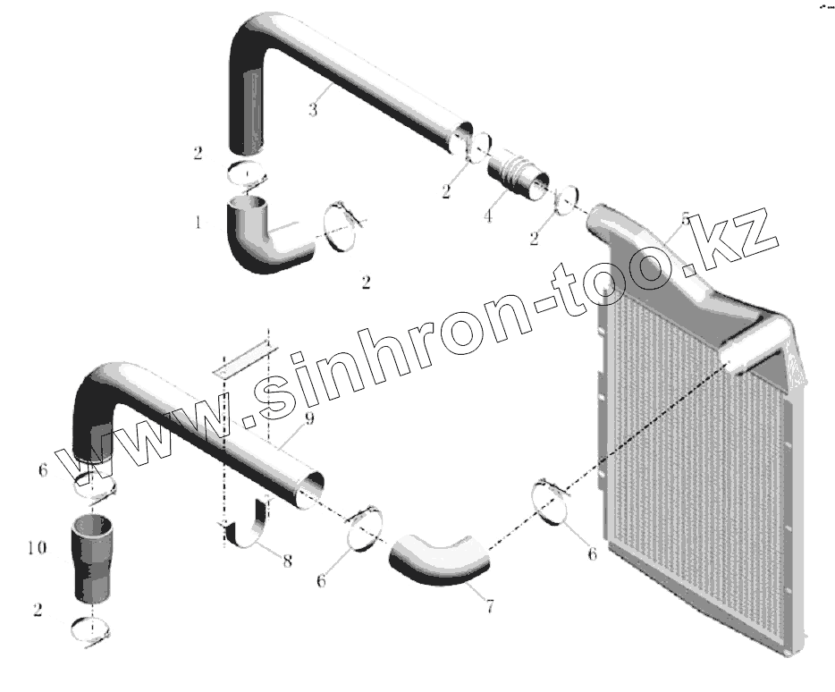 Каталог запасных частей к технике: Yutong Автобус ZK6899HA. Интеркулер нагнетателя в сборе (ISDe230 30)