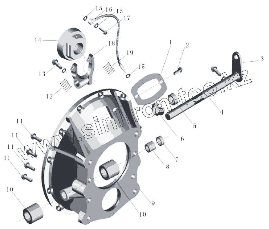 Каталог запасных частей к технике: Yutong Автобус ZK6899HA. Корпус сцепления в сборе