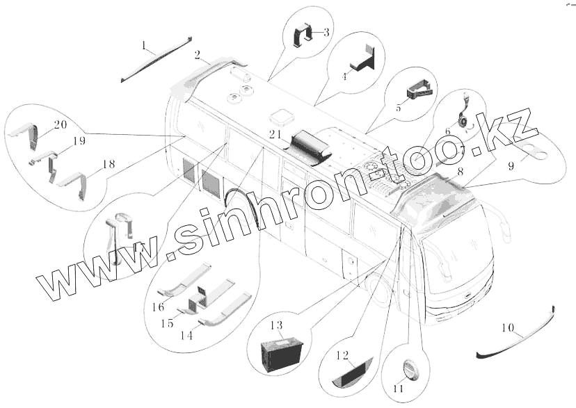Каталог запасных частей к технике: Yutong Автобус ZK6899HA. Внутренняя отделка в сборе