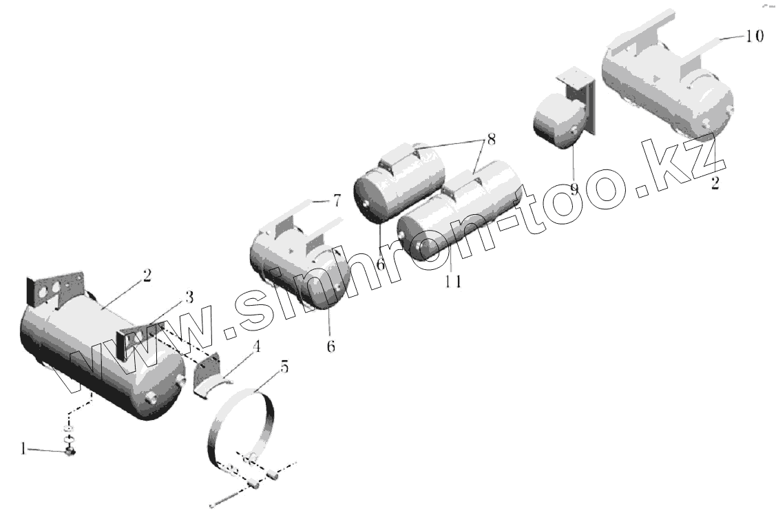 Каталог запасных частей к технике: Yutong Автобус ZK6899HA. Воздушный ресивер(пневморессора)