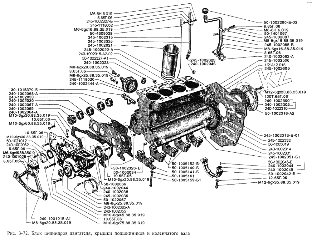 Каталог запасных частей к технике: ЗИЛ-3250. Блок цилиндров двигателя, крышки подшипников и коленчатого вала