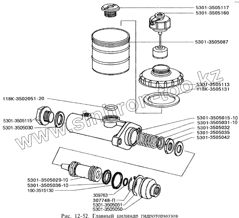 Каталог запасных частей к технике: ЗИЛ-3250. Главный цилиндр гидротормозов