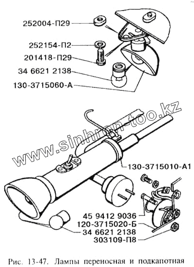 Каталог запасных частей к технике: ЗИЛ-3250. Лампы переносная и подкапотная
