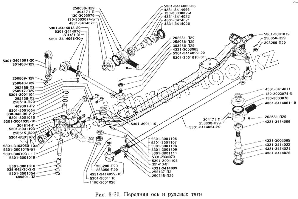 Каталог запасных частей к технике: ЗИЛ-3250. Ось передняя и рулевые тяги
