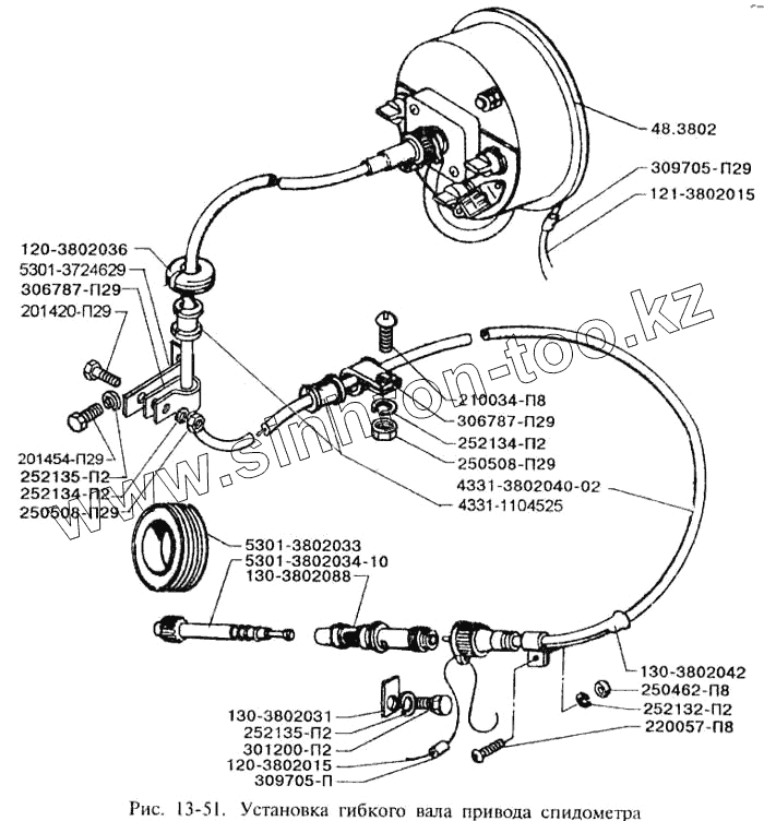 Каталог запасных частей к технике: ЗИЛ-3250. Установка гибкого вала привода спидометра