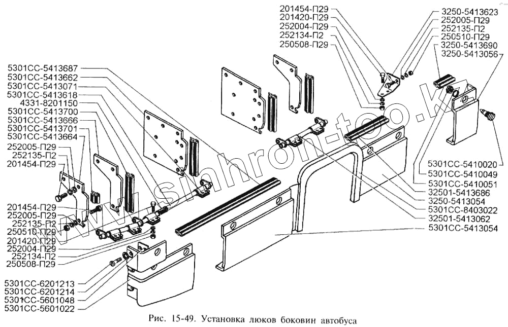 Каталог запасных частей к технике: ЗИЛ-3250. Установка люков боковин автобуса