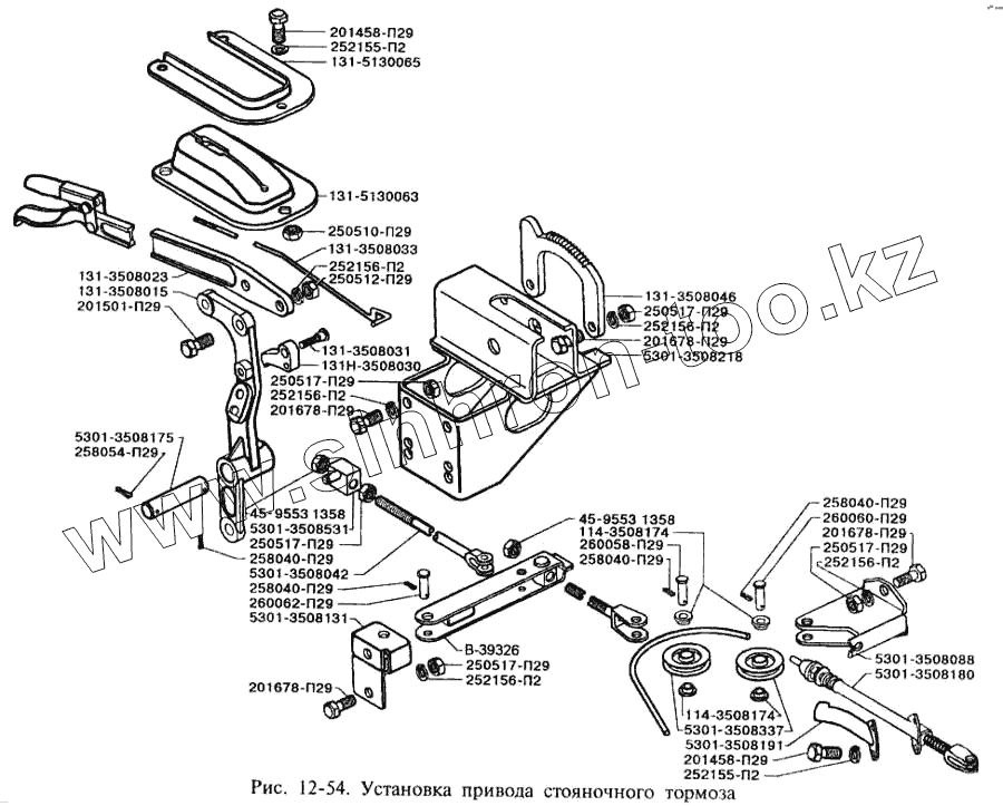Каталог запасных частей к технике: ЗИЛ-3250. Установка привода стояночного тормоза