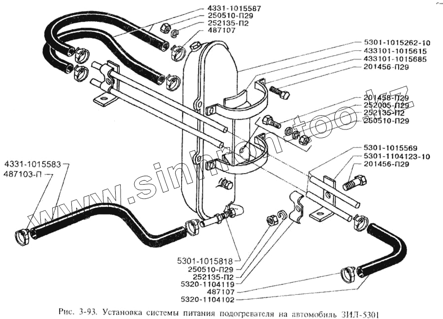 Каталог запасных частей к технике: ЗИЛ-3250. Установка системы питания подогревателя на автомобиль ЗИЛ-5301