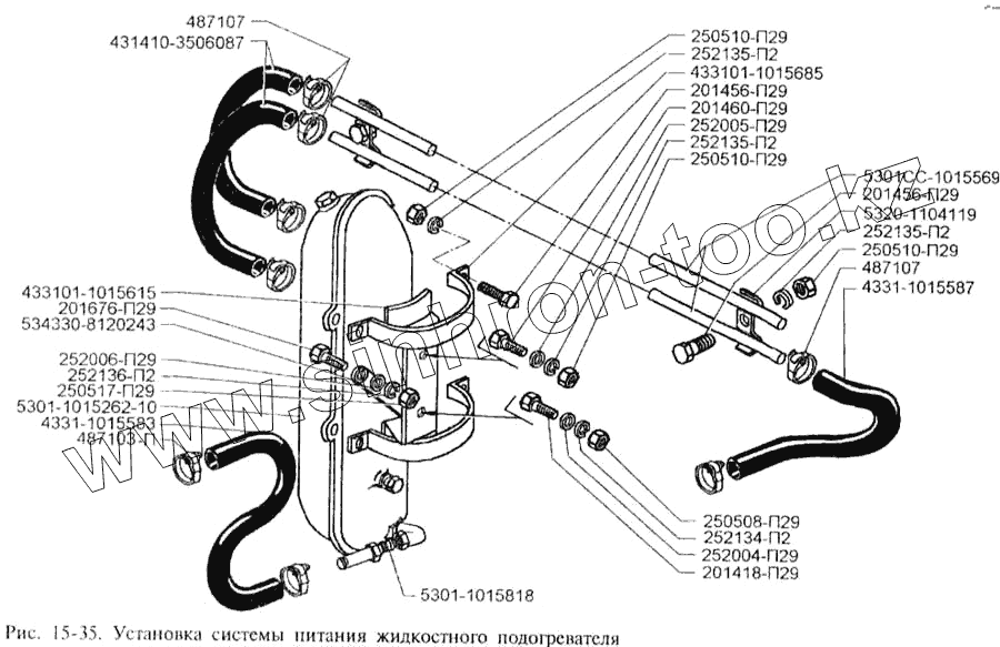 Каталог запасных частей к технике: ЗИЛ-3250. Установка системы питания жидкостного подогревателя