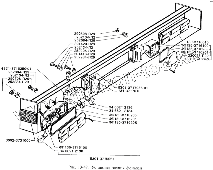 Каталог запасных частей к технике: ЗИЛ-3250. Установка задних фонарей