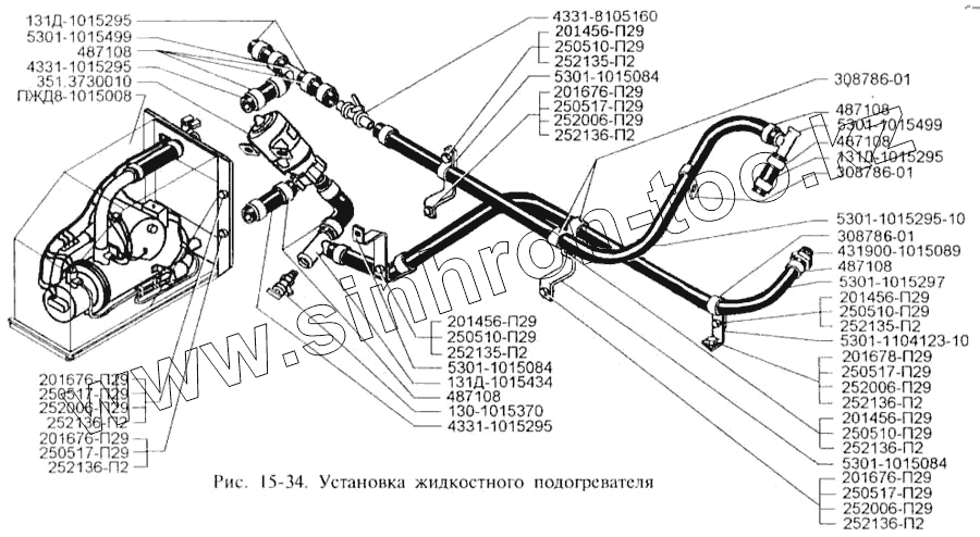 Каталог запасных частей к технике: ЗИЛ-3250. Установка жидкостного подогревателя