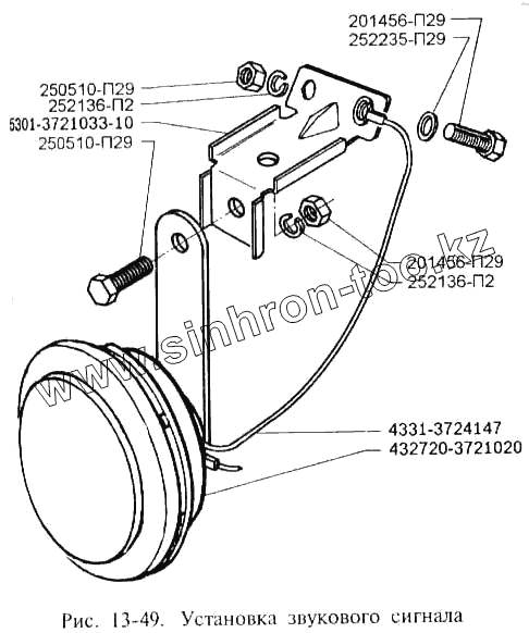 Каталог запасных частей к технике: ЗИЛ-3250. Установка звукового сигнала