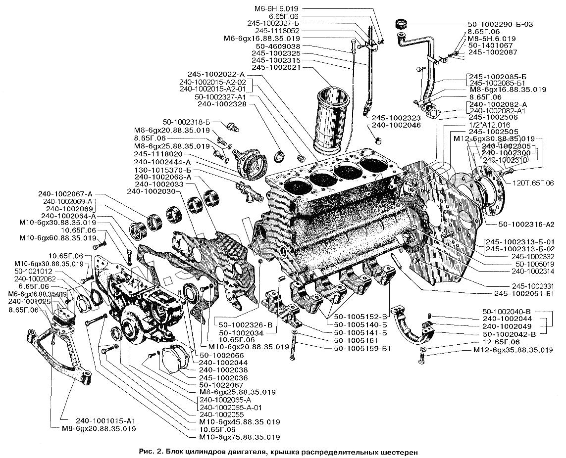 Каталог запасных частей к технике: ЗИЛ-3250. Блок цилиндров, крышка распределительных шестерен