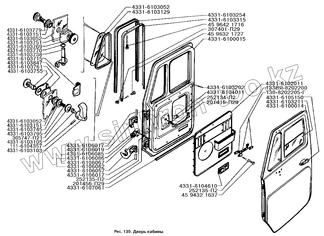 Каталог запасных частей к технике: ЗИЛ-3250. Дверь кабины