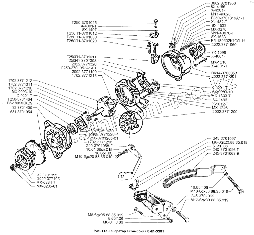 Каталог запасных частей к технике: ЗИЛ-3250. Генератор автомобиля ЗИЛ-5301
