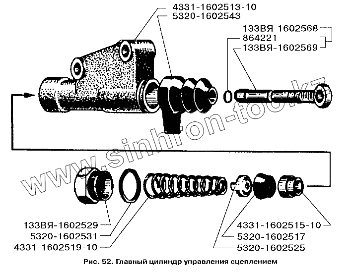 Каталог запасных частей к технике: ЗИЛ-3250. Главный цилиндр управления сцеплением