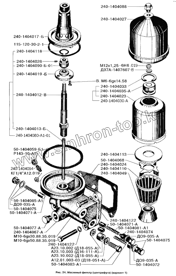 Каталог запасных частей к технике: ЗИЛ-3250. Масляный фильтр (центрифуга) (вариант 1)