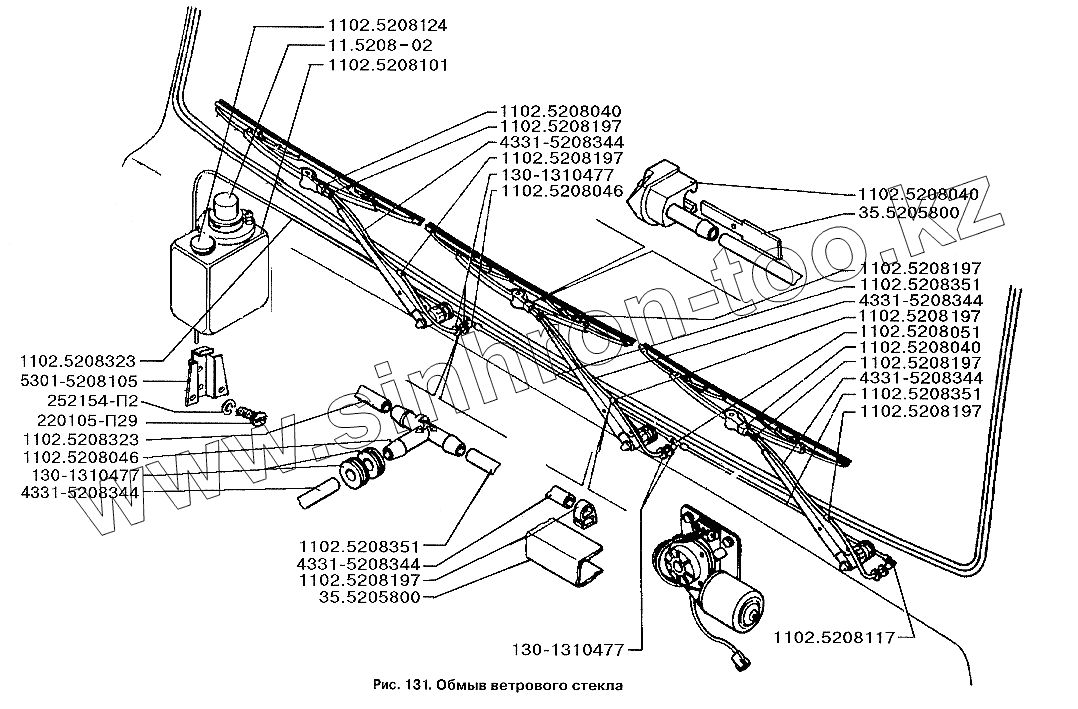 Каталог запасных частей к технике: ЗИЛ-3250. Обмыв ветрового стекла