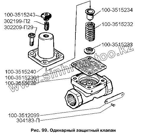 Каталог запасных частей к технике: ЗИЛ-3250. Одинарный защитный клапан