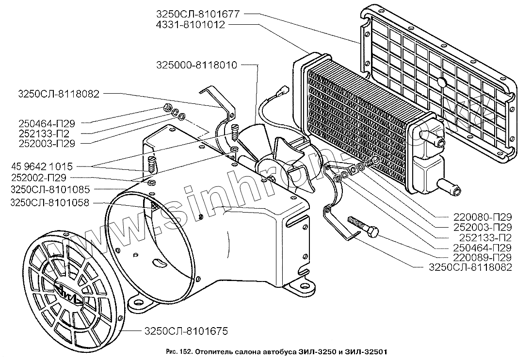 Каталог запасных частей к технике: ЗИЛ-3250. Отопитель салона автобусов ЗИЛ-3250 и ЗИЛ-32501