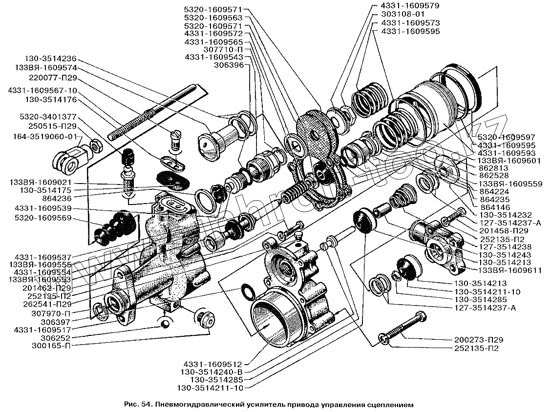 Каталог запасных частей к технике: ЗИЛ-3250. Пневмогидравлический усилитель привода управления сцеплением