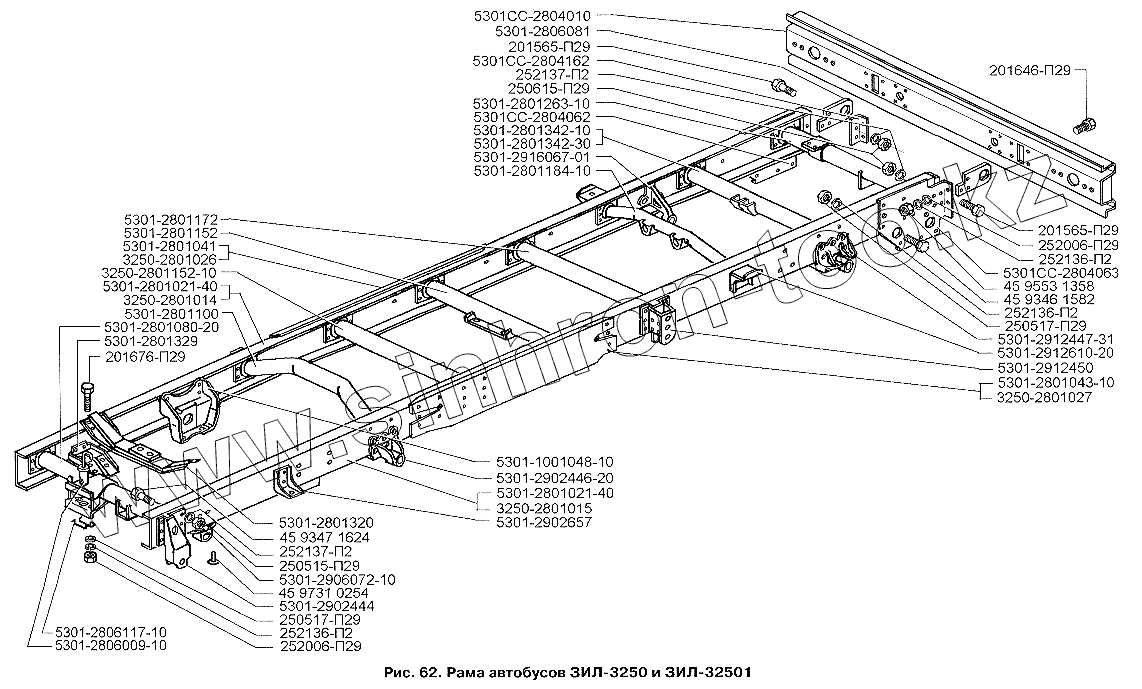 Каталог запасных частей к технике: ЗИЛ-3250. Рама автобусов ЗИЛ-3250 и ЗИЛ-32501