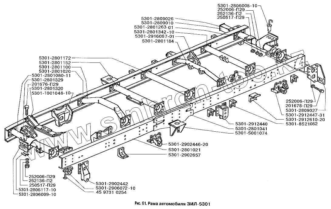 Каталог запасных частей к технике: ЗИЛ-3250. Рама автомобиля ЗИЛ-5301