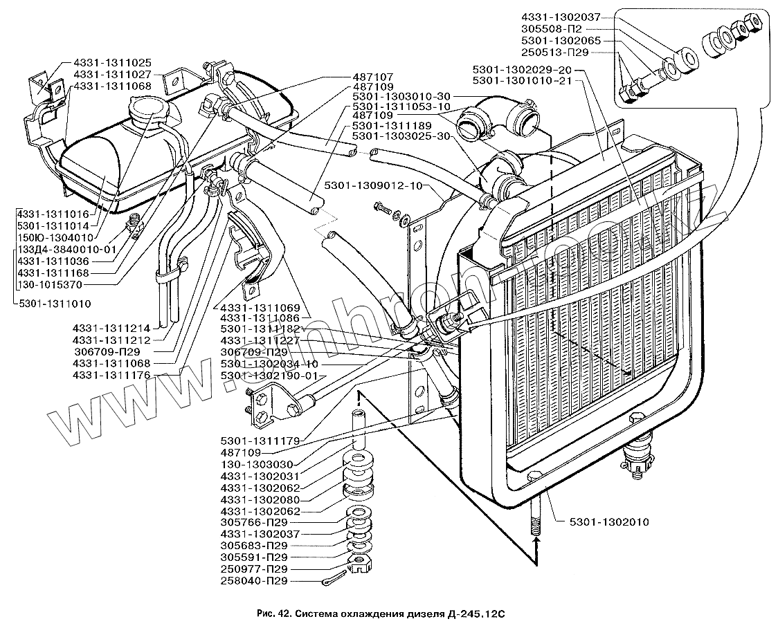 Каталог запасных частей к технике: ЗИЛ-3250. Система охлаждения дизеля Д-245.12С