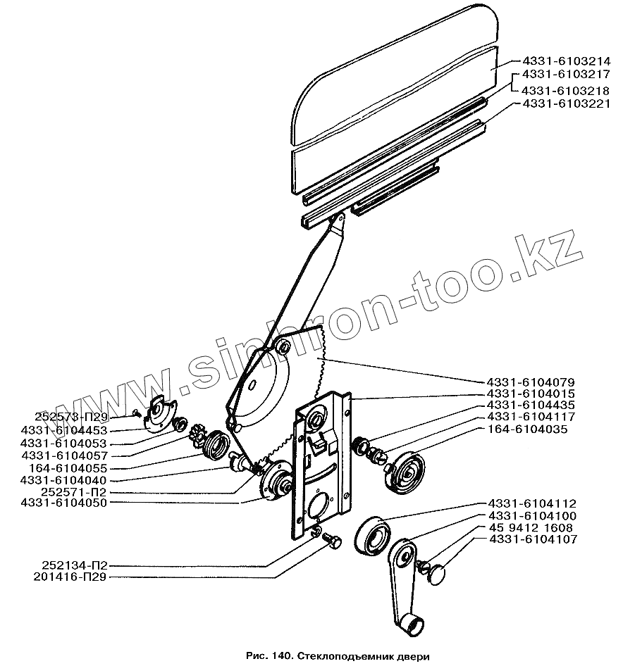 Каталог запасных частей к технике: ЗИЛ-3250. Стеклоподъемник двери
