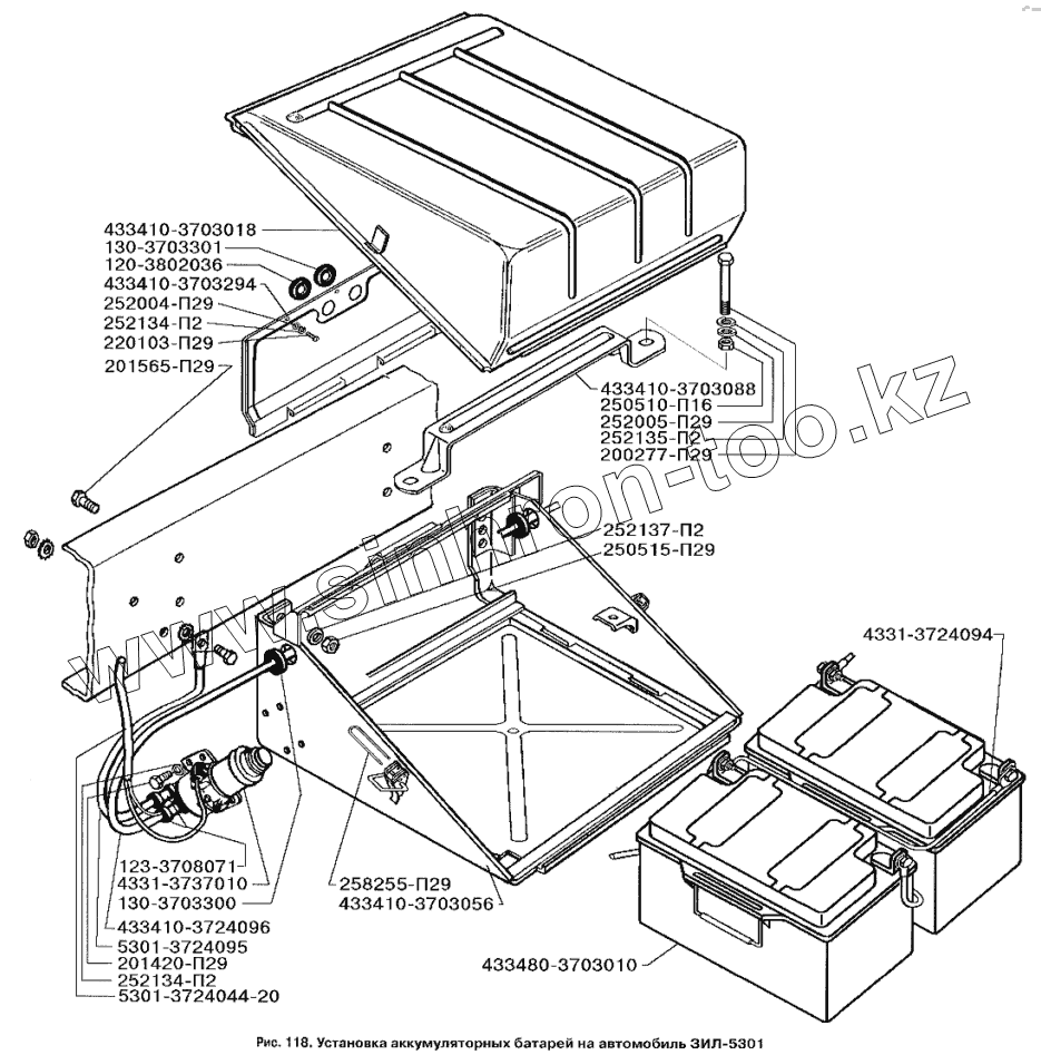 Каталог запасных частей к технике: ЗИЛ-3250. Установка аккумуляторных батарей на автомобиль ЗИЛ-5301