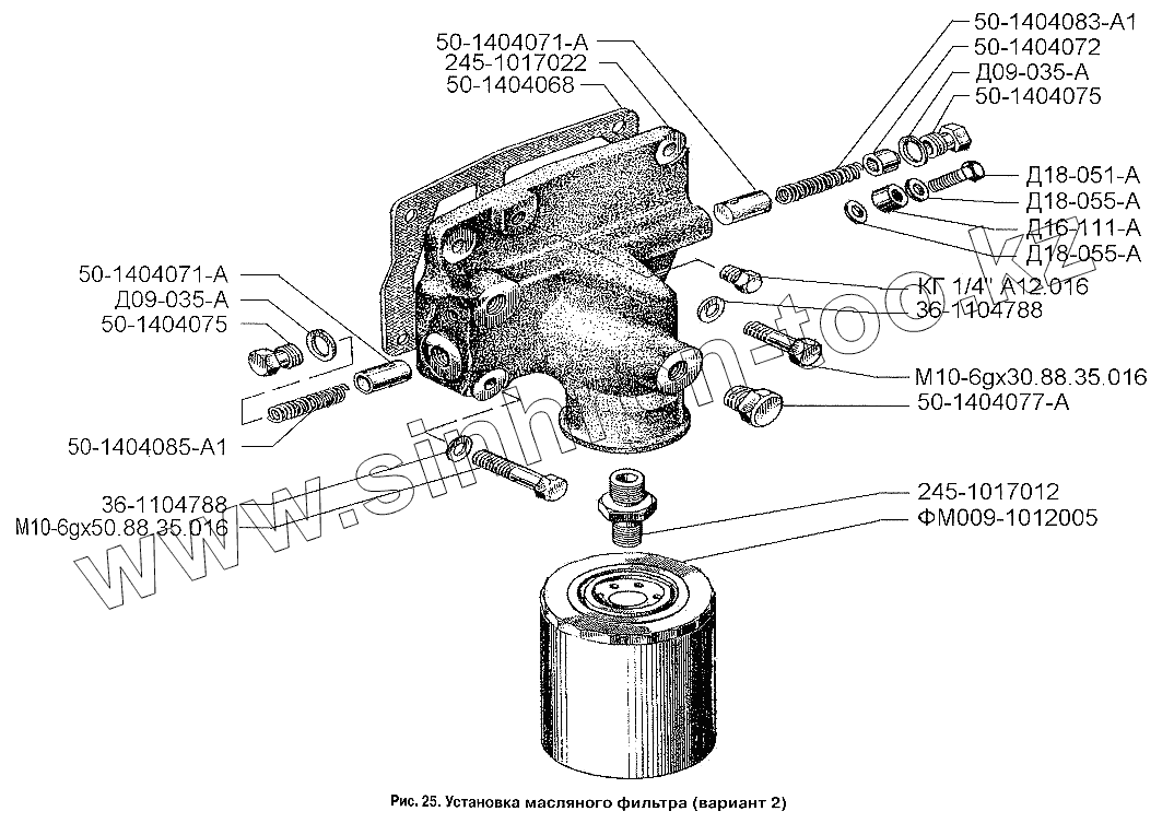 Каталог запасных частей к технике: ЗИЛ-3250. Установка масляного фильтра (вариант 2)