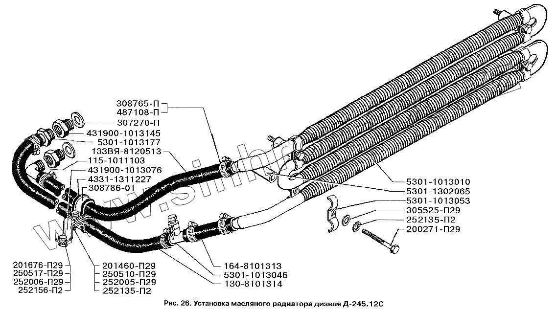 Каталог запасных частей к технике: ЗИЛ-3250. Установка масляного радиатора дизеля Д-245.12С