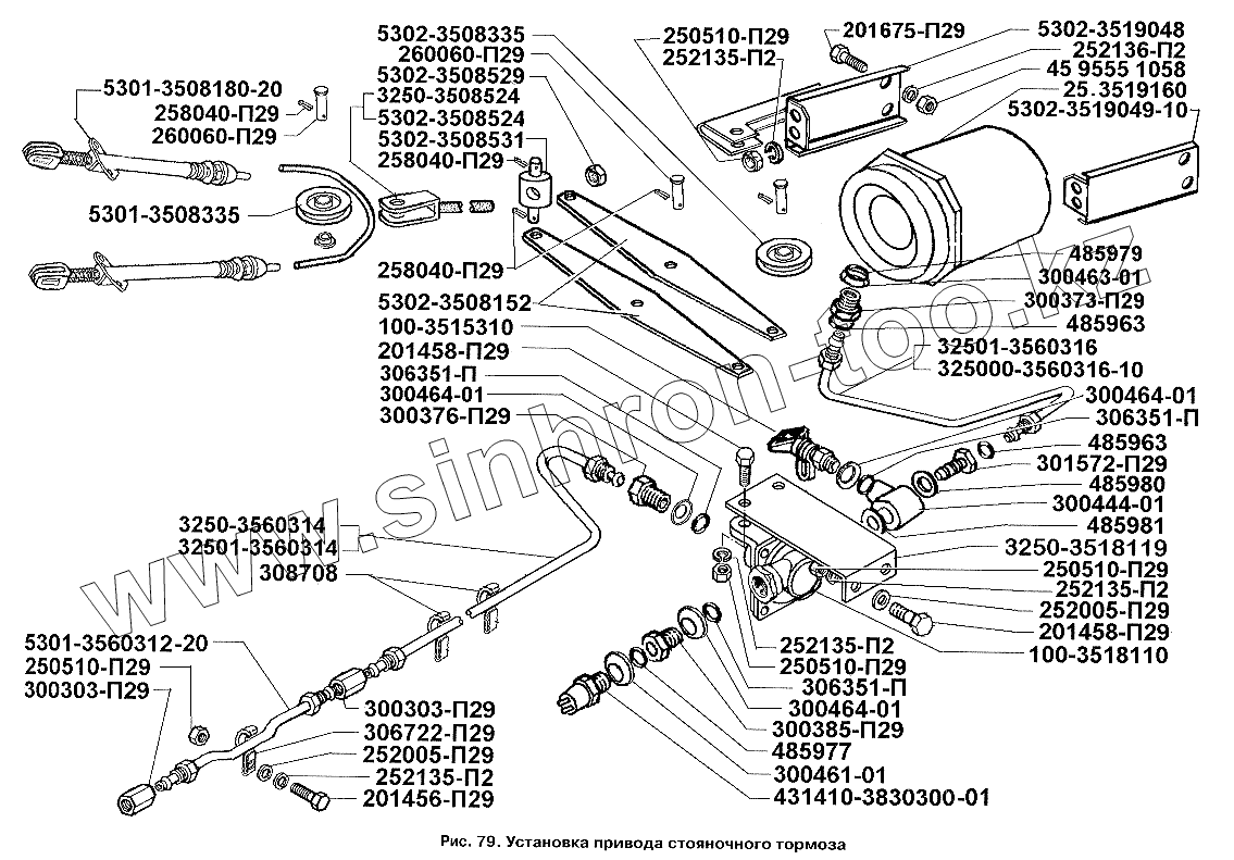 Каталог запасных частей к технике: ЗИЛ-3250. Установка привода стояночного тормоза